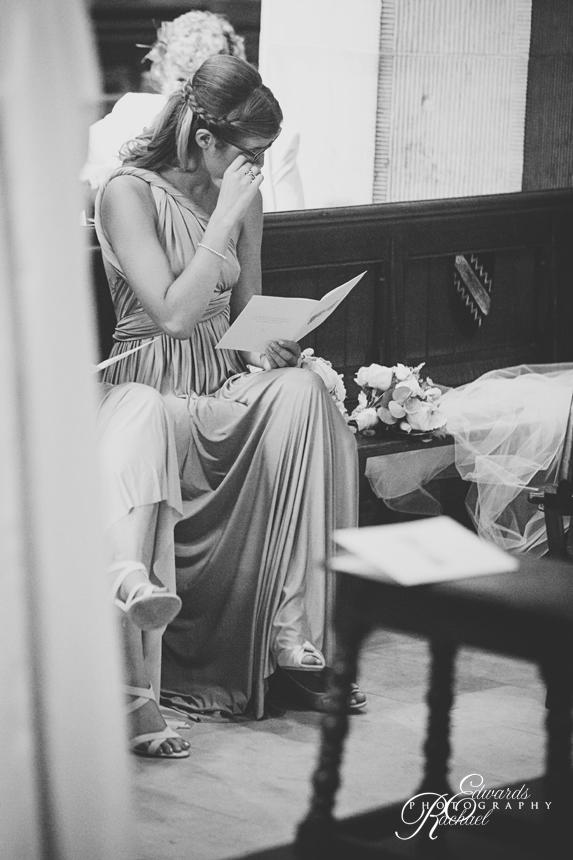 First things first, I met Abi and the girls at Abi's parents house for some Bridal Preparation shots. Abi was so relaxed and the mood in the house was so happy and excited, it's always a lovely part of the day to shoot. After capturing some images of hair, make up, dresses and flowers I made my way to the very impressive St Swithun's Church in East Grinstead to meet Chris and his Groomsmen before the Ceremony started. The weather was touch and go, with some guests arriving in glorious sunshine whilst others had to run speedily to get out of the pouring rain!