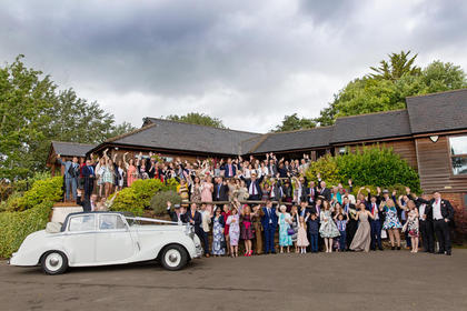 After the Ceremony, the sun was shining and we all headed out for a few group shots and the throwing of confetti before Abi and Chris were waved off in their beautiful vintage car and the guests hitched their ride on an organised coach.