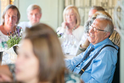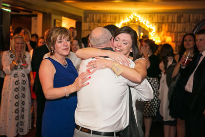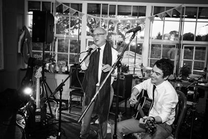 After a gorgeous meal back at the pub and some great speeches, everyone spilled outside again to soak up the rays, before a surprise performance by Emily's dad and brother started off the evenings music and dancing.