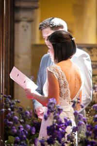 They were married at St John the Baptist Church, where the sun streamed through the stained glass during a really lovely service where even the kids were kept entertained by accompanying the hymms with maracas, tambourines and more - a great idea!