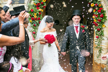 Their Ceremony took place at the beautiful St John the Baptist Church in Westfield, followed by a reception in the extremely impressive Montgomerie Suite at The Bannatyne Hotel & Spa, Hastings. The rain had been threatening all day and quite frankly it didn't matter at all when, as soon as everyone made their way in to sit down, it absolutely threw it down! Great luck.
