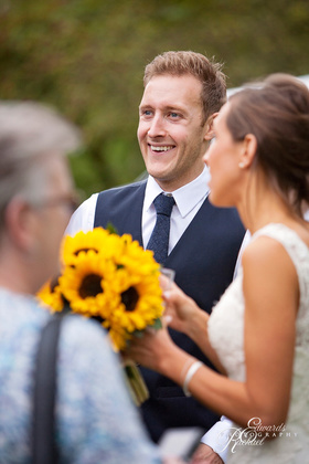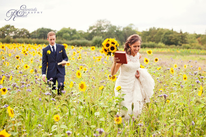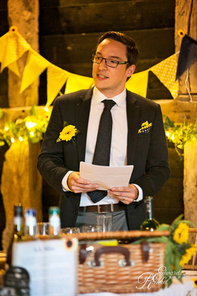 The happy couple revved the engine in their classic MG as they made their way to the Hookhouse Farm and on arrival I popped into the barn. I had been a few days earlier to have a look around and thought it was gorgeous then, but wow, it was absolutely breathtakingly beautifully decorated thanks to lots of hard work from Jess, Chris and friends the day before. They really had thought of everything! After some group shots and couple portraits (I couldn't believe my luck that there was a sunflower field in full bloom!), everybody took to their places to enjoy the gorgeous hog roast.