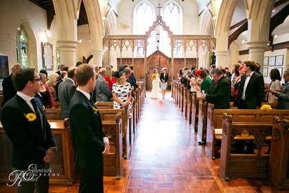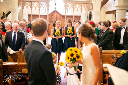 I then made my way to the church to meet Chris and his groomsmen, who looked very dapper in their navy suits and wool ties, for a few shots before the guests started to arrive - and weren't they a good-looking and well-dressed bunch of guests! Fashionably 10 mins late, Jess arrived looking absolutely stunning, walking down the aisle followed by the cutest bunch of flower girls and page boys I'd ever seen! The ceremony was really lovely, with a beautiful performance of Ave Maria by Alice Rose, as the register was signed.
