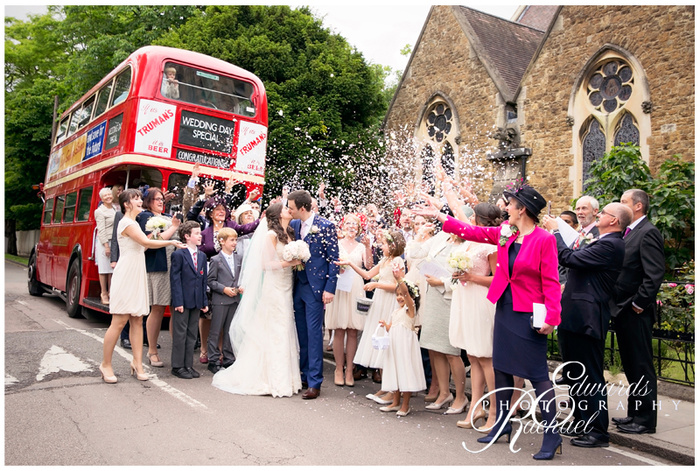 Katie and Rich had arranged for the London Bus Company to transport them and their guests between the Church and their reception venue, which (apart from only one slight mishap of Granny getting on the wrong bus!) was a great idea, ran smoothly and was brilliant fun.