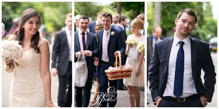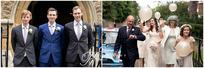 I arrived at Katie's parents house for a few pre-ceremony group shots and was completely wowed by Katie's and her bridesmaid's dresses, which were absolutely stunning. About a minute down the road was Christ Church where I caught Rich (looking superbly dapper in his navy suit!) greeting guests but it wasn't long before he and his groomsmen were ushered inside so not to catch a glimpse of Katie and her entourage making the short walk from her parents house, balloons in tow.