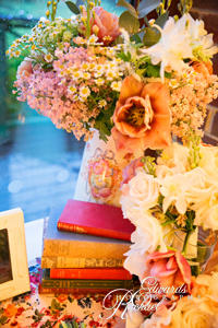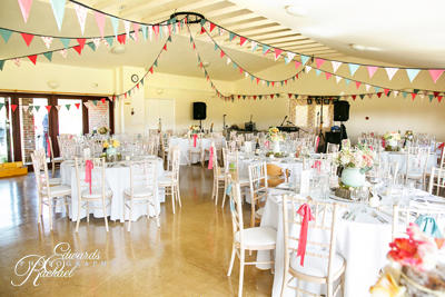 We then made our way to the reception at Duncton Village Hall, which had been dressed absolutely beautifully with bunting, flowers, books, photographs, origami butterflies, ribbons, bicycle tyres, toy train tracks - you name it, it was in there!
