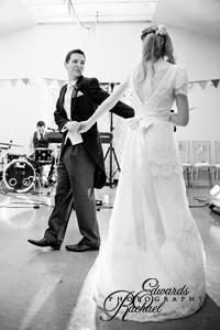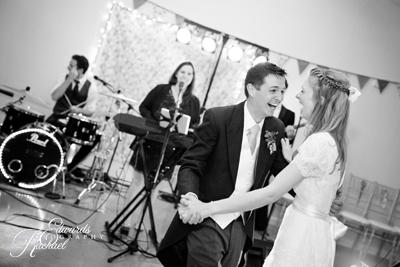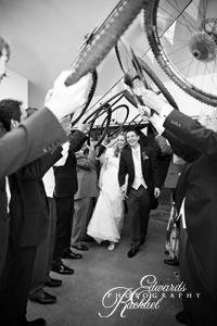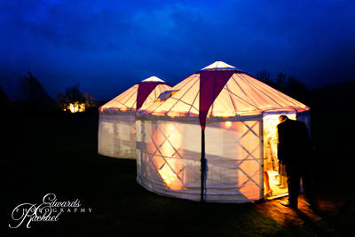 The heavens opened exactly at the right time, just as the newlyweds and their guests sat down to enjoy their meal - followed by some brilliant speeches. Then, whilst some were enjoying lounging in the cosy Yurt, the happy couple were welcomed to the dance floor through a tunnel of bike wheels for their First Dance - to the Thomas The Tank Engine sound track!